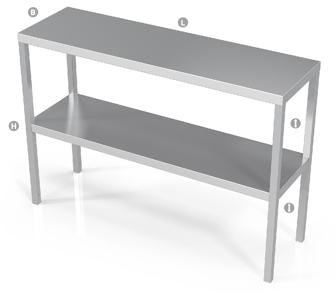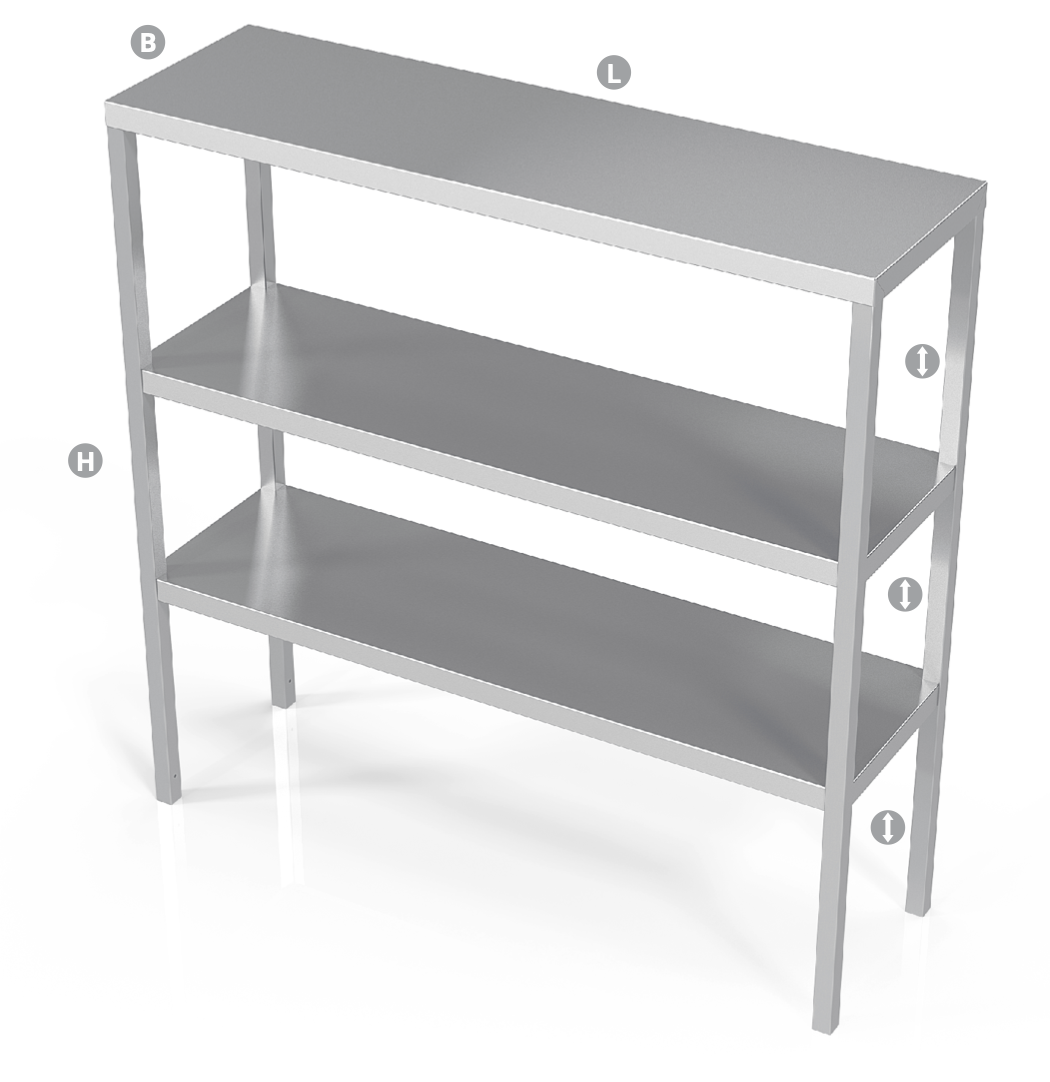 Available as single (H=400 mm), double (H=700 mm) and triple (H=1000 mm) shelf.
